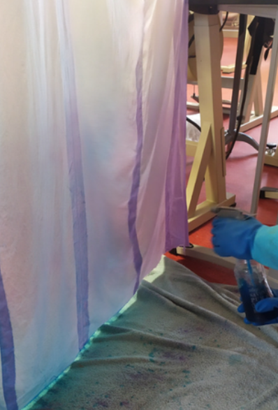 J'ai réalisé le patron à mes mesures en suivant les consignes de kimono traditionnel. J'ai peint, teinté et brodé avant d'assembler le kimono et de rabattre en points mains la doublure.