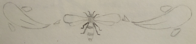 Pour le obi je dessine un motif qui reprend l'abeille, élément central et les carpes qui se tournent vers l'extérieur, l'avenir. La composition linéaire rappelle l'évolution de la vie.